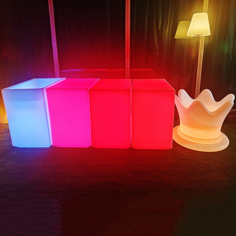 เฟอร์นิเจอร์ LED เปลี่ยนสีได้จากระยะไกลสี RGB ดีไซน์รูปตัว L สำหรับงานปาร์ตี้กลางแจ้งในร่มโต๊ะเคาน์เตอร์บาร์ไนท์คลับ