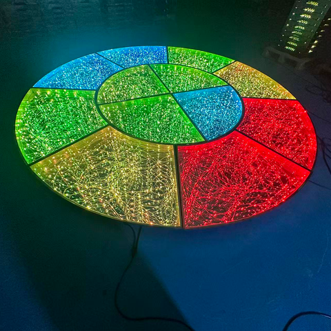 เต้นรำทรงกลม RGB เปลี่ยนสีได้สำหรับงานแต่งงานงานเลี้ยงเต้นรำแบบอินฟินิตี้ลูกบอลเต้นรำพื้นเรืองแสงแสงกระจก3D LED